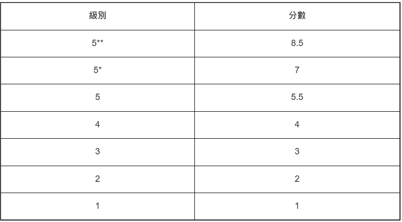 计分方法:最佳5科(第6科达3级或以上可额外加分)