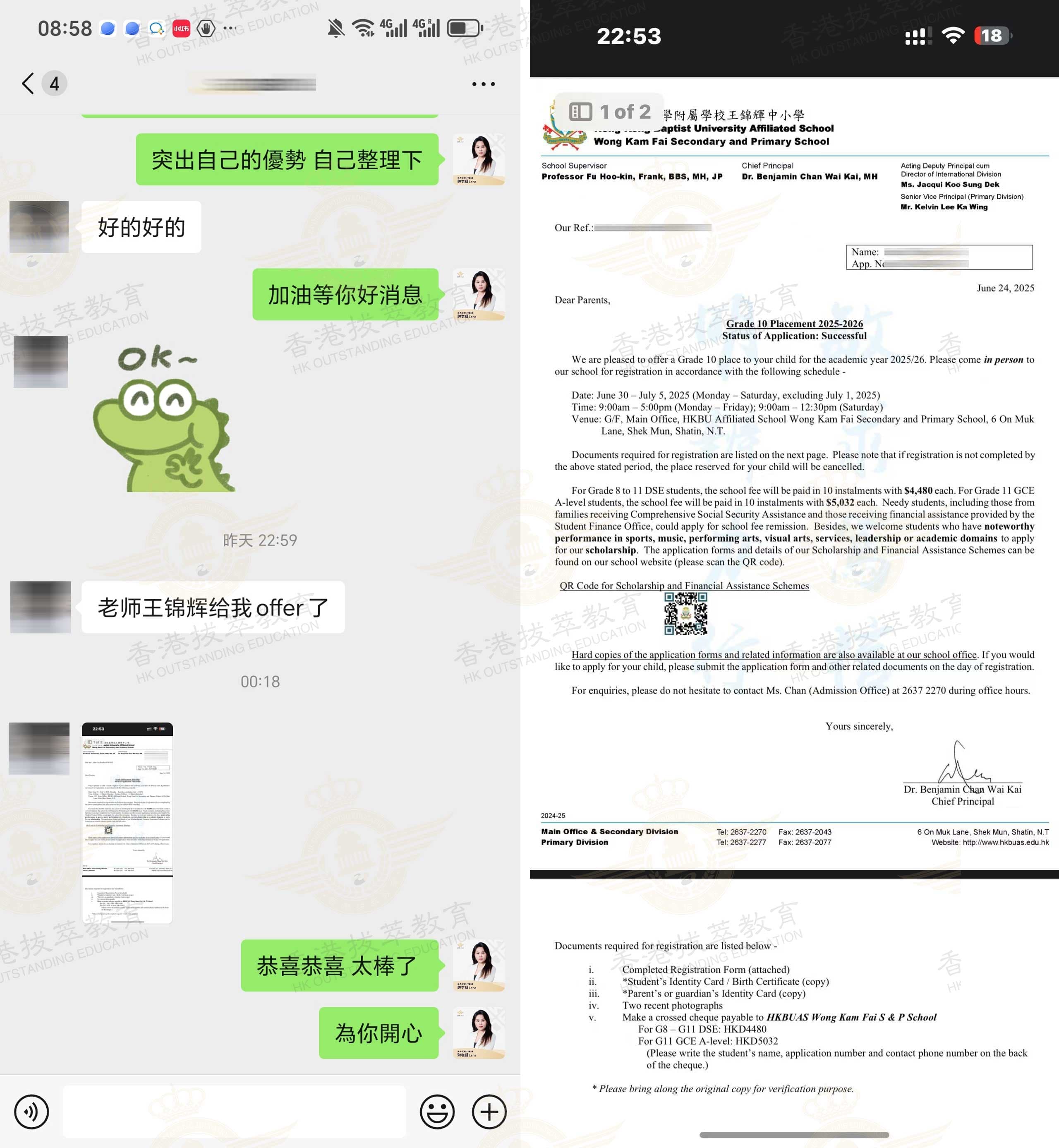 恭喜拔萃的学生顺利收到王锦辉的中四offer!老实说,这份offer拿的真不容易,王锦辉本来就学位很紧张,高年级转校就更难~