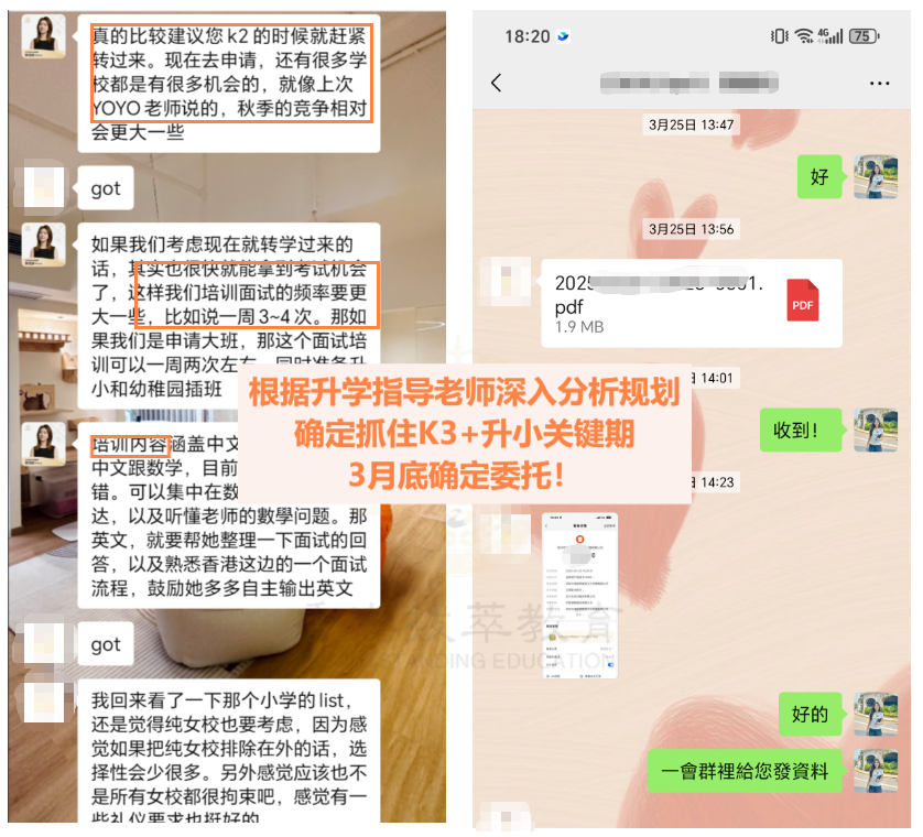 面对家长的明确需求,我们没有将孩子的K3插班和小一申请割裂开,而是根据孩子的情况评估后,制定了一套“以终为始”的长线升学规划方案,双线并行,互相促进。