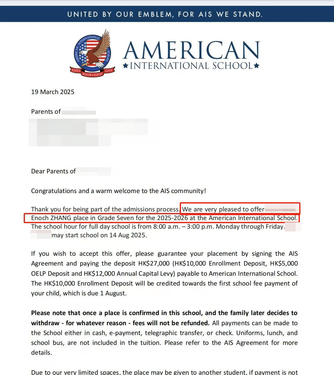 拿offer真的太简单了,香港拔萃教育又拿下一封香港美国国际学校的offer啦!