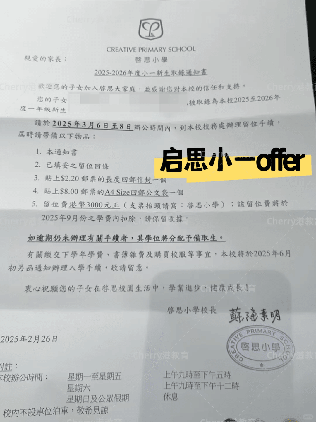 香港启思小学录取offer