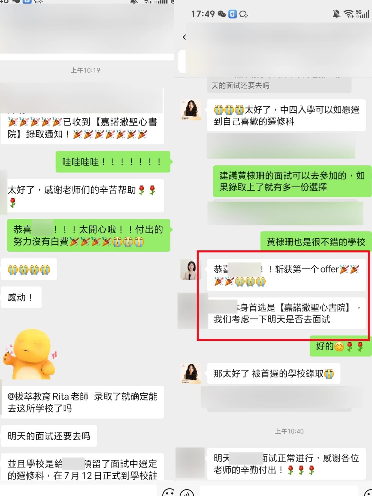 最近的插班考试季,拔萃老师们都忙晕,帮忙整理学生材料、安排学生笔试、面试课程~都快把我累透支~辛亏功夫不负有心人,我们学生接连拿下满意的学校offer~其中有2组还是一举夺魁,第一份offer就是孩子的目标首选学校