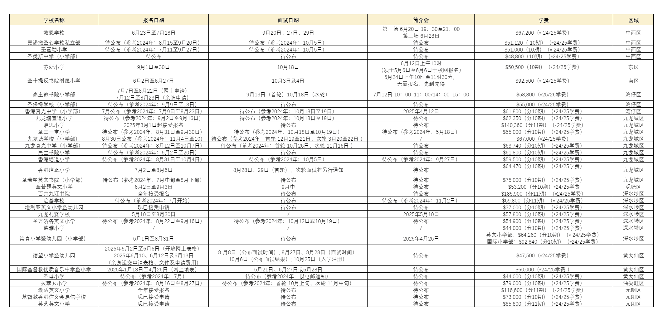 2025年香港小学重要学校招生概览