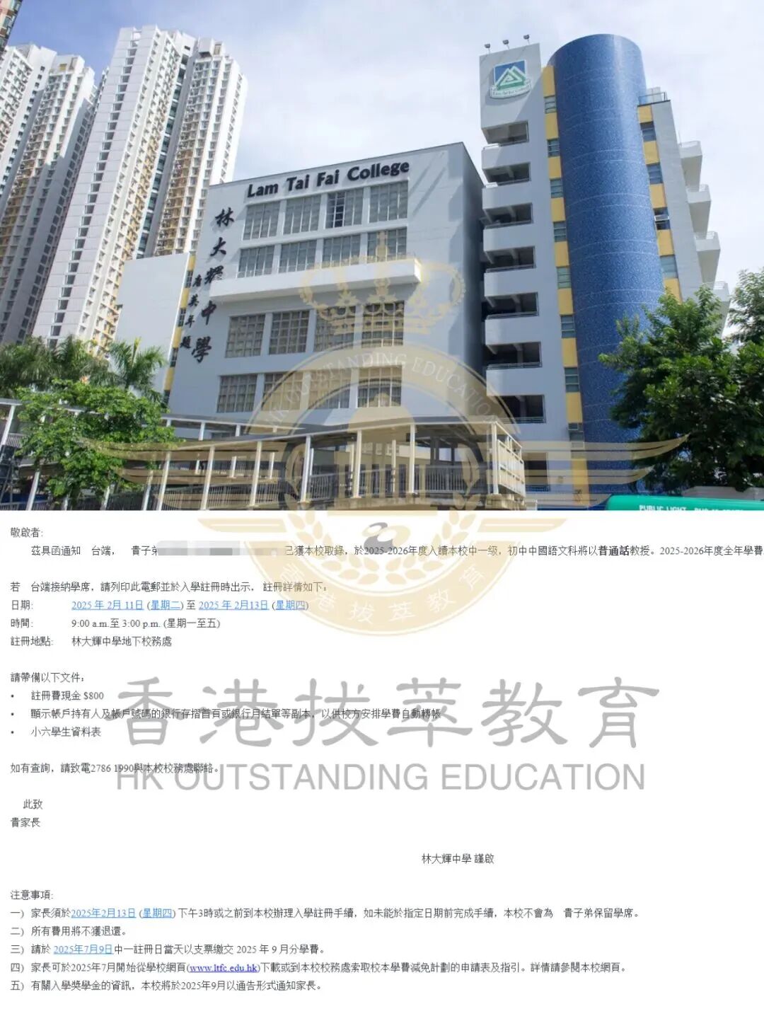 不过,就算申请有难度,我们香港拔萃教育团队也照样帮助内地港宝拿下过林大辉中学的录取offer!